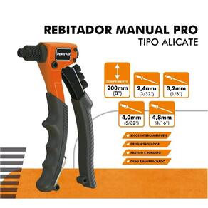 - Bicos intercambiáveis - Design inovador - Prático e robusto - Cabo emborrachado - Comprimento: 200mm - Compatível com rebites: 2, 3, 4 e 5mm Marca: Não Informado Ean: 7898512372318