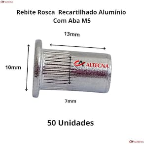 Feito em alumínio de alta qualidade, este rebite oferece durabilidade e resistência, garantindo uma fixação segura. Sua rosca possui as medidas M5 X 0,8, e o diâmetro externo é de 7mm. O comprimento do rebite é de 13mm, e o diâmetro da aba é de 10mm.