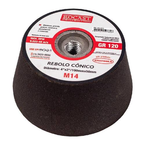 O rebolo cônico de 4 x 2 polegadas GR 120 242,0011 - Rocast, é uma ferramenta abrasiva utilizada para acabamento de mármore, granito, pedra, cerâmica, porcelanato e concreto.