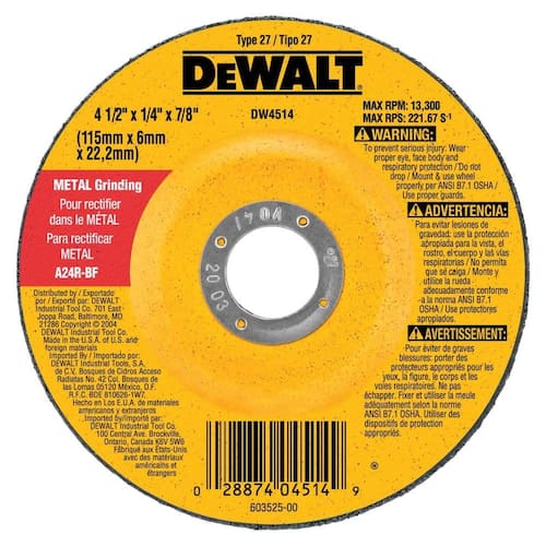 Rebolo de metal de uso geral DEWALT DW4719 de 7 polegadas por 1/4 polegadas por 7/8 polegadas - Grão de óxido de alumínio de alto desempenho para longa vida útil e alta remoção de material - Alta concentração de grãos para ação agressiva de moagem e rodas de corrida mais suaves - A mistura exclusiva de materiais garante rodas duráveis e de longa vida útil - 3 folhas completas de fibra de vidro para durabilidade e segurança