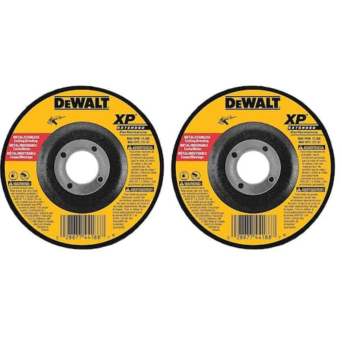 Rebolo de desempenho estendido DEWALT DW8808 de 4-1/2 polegadas por 1/4 polegadas, mandril de 7/8 polegadas (pacote com 2) - As informações abaixo são apenas por pacote - Feito para suportar até mesmo os trabalhos mais difíceis - Projetado pensando no usuário - Adequado para atender às necessidades na loja, em casa ou no campo - Comprovado e testado quanto à durabilidade e função em condições reais - Feito pensando no usuário usando a alta qualidade Materiais e artesanato de classe mundial