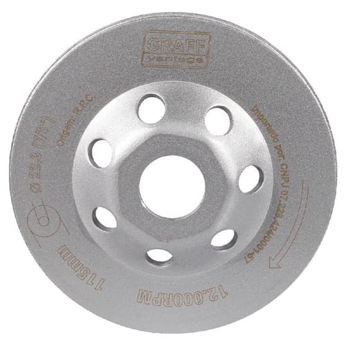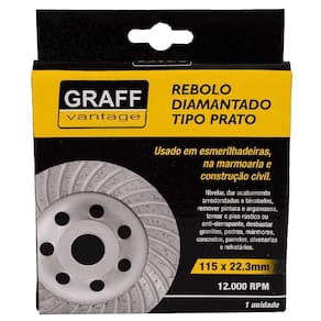 Rebolo diamantado tipo prato é indicado para uso em esmerilhadeiras, utilizado em marmoraria, construção civil/alvenaria, para nivelar, acabamentos arredondados e bisotados, remover pinturas e argamassas, tornar pisos rústicos ou antiderrapantes, desbastar granitos, pedras, mármores, concretos, paredes, alvenarias e refratários. Fabricado em material de alta resistência, oferecendo maior durabilidade ao produto.