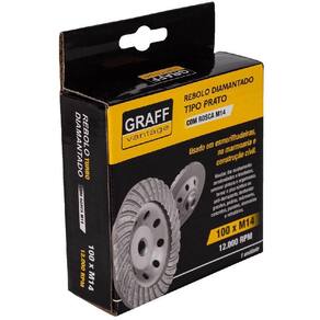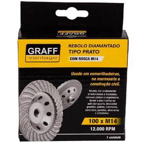 Marca: Graff Vantage Rebolo Diamantado Tipo Prato com rosca M14. Indicado para nivelar, dar acabamentos, remover pinturas e argamassa, desbastar granitos, pedras, mármores, concretos, paredes, alvenarias e refratários. Marca: Graff