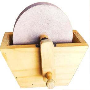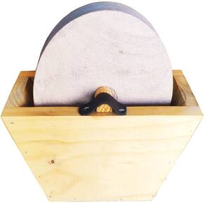 rebolo para afiar facas amolador de facas manual grande . Rebolo: o rebolo é um excelente item para você afiar a sua faca, além de que ele é um ótimo item decorativo para sua casa quando não está em uso, pois ele possui um design rústico e campeiro que combina com qualquer tipo de decoração. Grês: grês é o material da pedra utilizado no rebolo, que apesar de necessitar de cuidados por fragilidade em relação a impactos, ele contém alta resistência à abrasão desgaste superficial , resistência a ácidos, resistência à água pode ser utilizado em locais molhados , além de fácil limpeza e manutenção do produto. Este material é perfeito para a afiação de facas, proporcionando melhor fio sem arranhar a lâmina. Sobre o produto: