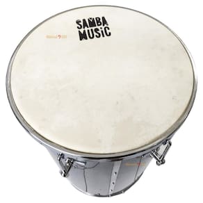 Corpo de madeira, revestido com lâmina de alto brilho e pele de couro que transmite uma sonoridade grave para marcação. Acabamento lâmina de alto brilho(sparkle)