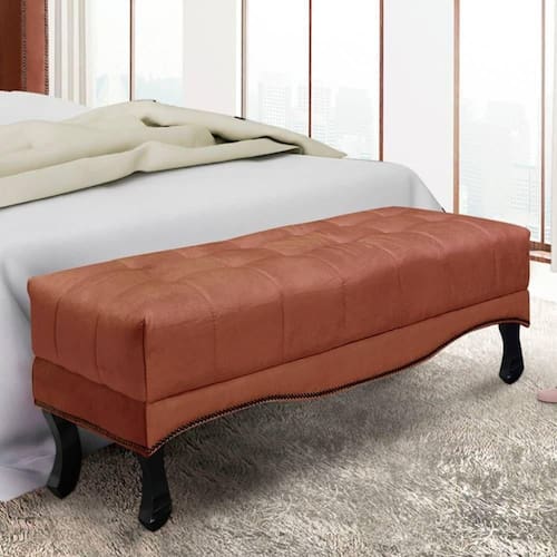 Revestimento em veludo Deluxe 250g: elegante e confortávelAssento capitonado: sofisticação e aconchegoPés em madeira maciça estilo Luiz XVDetalhes em tachas fumê para acabamento refinadoDiversas cores para personalizar seu ambienteFácil montagem: basta fixar os pés