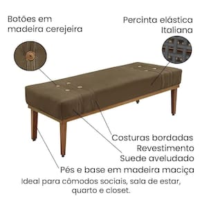 Revestido com suede veludo light 180g, oferece um toque suave e refinado. A base e os pés em madeira maciça garantem estabilidade e longa durabilidade, enquanto a espuma D26 proporciona um assento firme e confortável, ideal para o uso diário.