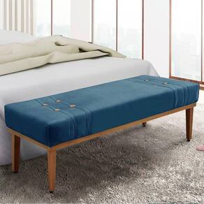 Seu estofado é revestido com veludo deluxe 250g, oferecendo textura macia e visual sofisticado. A estrutura é feita em madeira maciça, garantindo durabilidade, enquanto os botões decorativos em madeira cerejeira adicionam charme artesanal à peça.