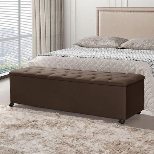 Recamier Baú Com Rodízios Cancun 1,30m Veludo Marrom - Cor: Marrom Se você está procurando um móvel versátil para o seu quarto, o Recamier Baú Cancun é a escolha perfeita para você! Com detalhe em capitone, traz um charme extra para o ambiente, deixando-o ainda mais elegante e sofisticado.CaracterísticasTipo: Recamier Baú Modelo: Cancun Tecido: VeludoCor: MarromDIMENSÕES DO PRODUTOAltura: 46cmLargura: 130cmComprimento: 46cmInformações adicionais:- Materiais da estrutura: Madeira ecológica, MDF- Requer montagem: Sim- Limpeza: Não usar produtos abrasivos, usar apenas peno seco e limpo.- Com rodízios: Sim- Garantia: 3 Meses à partir da emissão da NFATENÇÃOAS IMAGENS SÃO MERAMENTE ILUSTRATIVAS E PODEM SOFRER VARIAÇÕES DE COR E PEQUENOS DETALHES DE ACORDO COM O SEU MONITOR, ILUMINAÇÃO DO AMBIENTE E ATÉ MESMO A SUA PERCEPÇÃO VISUAL.Recamier Baà com RodÃzios Cancun 1,30m Veludo Marrom Marca: Villa Casa Decor