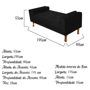 Recamier Baú Félix King Size 195cm Suede Preto - Doce Sonho Móveis
