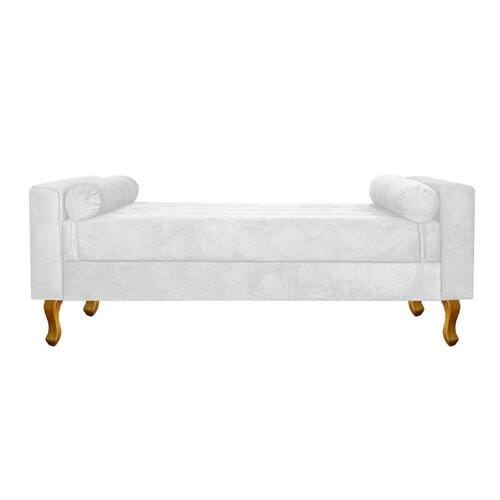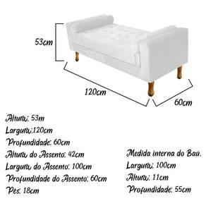 Com uma estrutura e beleza única, o Recamier Félix se adapta em qualquer ambiente, tornando-o ainda mais elegante e harmonioso. Um Recamier luxuoso de alta qualidade, dará um toque especial em seu ambiente. Não perca essa oportunidade de levar mais charme e requinte ao seu cômodo, adquira já o seu! Especificações Técnicas do Recamier Félix: - Altura: 53 cm; - Largura: 120 cm; - Profundidade: 60 cm; - Altura do Assento: 42 cm; - Largura do Assento: 100 cm; - Profundidade do Assento: 60 cm; - Altura dos Pés: 18 cm; - Peso: 35 kg. - Peso Suportado: 220 kg. Medida Interna do Baú: - Altura: 11 cm; - Largura: 100 cm; - Profundidade: 55 cm; Diferenciais do Recamier Félix: - Material da Estrutura: fabricado com Madeira Pinus e Eucalipto Reflorestada, e alguns detalhes em MDF; - Tipo de Assento: estofado e com espuma de densidade D-26; - Tipo de Encosto: estofado e com espuma de densidade D-18; - Detalhes do Tecido: possui detalhes em botonê, onde os botões são revestidos no mesmo tecido do produto e finalizados com excelente acabamento; - Detalhes dos Pés: acompanha kit de pés (4 pés) de madeira, no estilo Luís XV, com alta resistência; - Volumes: nessa compra você receberá um único produto. Recomendações de limpeza: -Limpar com flanela limpa e seca. Não molhar o móvel e não expor em lugar úmido ou próximo de fontes de calor. Não usar produtos abrasivos. Observações Importantes: - As imagens ambientadas são meramente ilustrativas e podem apresentar itens que não compõe o produto; - Objetos decorativos que aparecem na foto não acompanham o produto; - As cores do produto podem variar de acordo com o monitor, a iluminação do ambiente, ou sua percepção visual; - O Recamier Félix chegará montado para você, bastando rosquear os pés; - Confira as dimensões antes da compra e certifique-se de que o produto passará por elevadores, portas e corredores, já que nossa entrega não inclui a subida de lances de escada, ou o lançamento de produtos; - Ao receber seus produtos, verifique no ato do recebimento qualquer dano na embalagem. Caso tenha alguma avaria, favor não assinar o comprovante de recebimento (A transportadora tem obrigação de esperar a conferência); - Produto para uso residencial em ambiente interno, não devendo ficar exposto diretamente ao sol, calor e umidades excessivas.