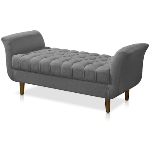 Uma excelente peça decorativa e funcional para seu lar ou ambiente de trabalho. O Recamier Grecia tem traços modernos e leves, deixando qualquer ambiente mais elegante e confortável, perfeito para o seu quarto ou sua sala dando um charme a mais. Possui uma estrutura resistente em madeira de eucalipto oferecendo maior durabilidade ao produto, revestimento em costura resistente com tecido de alta qualidade, excelente acabamento em Capitonê com Botões encapados, possui um design moderno e sofisticado também é ideal para ser posicionado aos pés de cama, além de super elegante também é confortável, deixa seu ambiente moderno e agradável, acompanha pés em madeira.