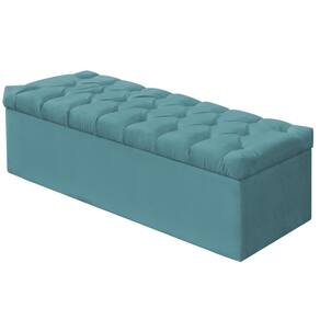 Recamier Calçadeira Solteiro 90cm Sofia Veludo Azul Turquesa - Montanaris Decor