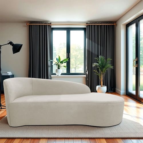 Recamier Curvo Orgânico 160cm 2 Lugares Lado Direito para Sala de Estar em Linho Paris Bege