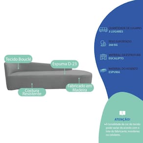 Recamier Curvo Orgânico 160cm 2 Lugares Lado Direito para Sala Estar Bouclé Paris Cinza