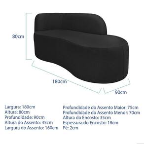 Além de ser um item decorativo de destaque, o Curvo Japão é extremamente funcional. Ele pode ser utilizado como apoio extra para visitas, um assento confortável para leitura, deixando o ambiente mais aconchegante e bem planejado. Acompanha Almofadas extras: Não Almofada do assento: Não Possui Almofada do encosto: Não Possui Altura do assento até o chão: 45 cm Altura do Encosto: 35 cm Altura dos Pés: 2 cm Ambiente Principal: Sala de Estar codigo_ean: 7900288215420 Cor: Preto Cor do Produto: Preto Densidade do Encosto: D-23 Enchimento do Assento: Espuma Estilo de Braço: Um Braço Firmeza do Assento: Firme Itens Inclusos: 1 Recamier Linha ou Coleção: Japão Marca: Maranata Estofados Material da Estrutura: Madeira Eucalipto Material dos Pés: PVC Modelo: Sofá Fixo Necessita Montagem: Não Origem do Produto: Nacional Peso: 65 kg Pet Friendly: Não Possui Apoio para Braços: Sim Possui Baú: Não Possui Encosto: Sim Possui Percintas Elásticas: Sim Possui Pés: 04 Possui Rodízio: Não Quantidade de Lugares: 03 Recomendações de Uso, Manutenção e Limpeza: Limpar com um pano seco e macio. Evite molhar o sofá e não o exponha a ambientes úmidos ou fontes de calor intenso. Produtos de limpeza abrasivos devem ser evitados. Revestimento do Braço: Tecido Suporta Até (kg): 260 kg Tecido Predominante: Boucle Tipo de Encosto: Fixo Tipo de Mola: Não Possui Tipo de Sofá: Recamier Marca: Não Informado