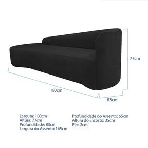 Recamier Curvo Orgânico 180cm 3 Lugares Lado Esquerdo para Sala de Estar Bouclé Paris Preto