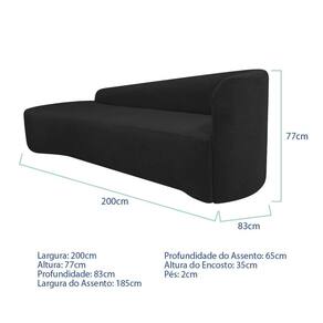 Recamier Curvo Orgânico 200cm 3 Lugares Lado Esquerdo para Sala de Estar Bouclé Paris Preto