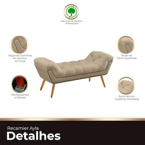 Introduza um toque de elegância ao seu quarto com o Recamier Estofado Ayla. Este móvel é mais do que estiloso e moderno; é a expressão máxima de sofisticação. Com detalhes em captones no assento e nas braças, além de acabamentos com botões na cor do móvel, esta recamier oferece uma decoração inigualável. As tachinhas de alumínio adicionam um charme extra, elevando ainda mais o ambiente. Além de funcional, o Recamier Ayla é uma verdadeira obra de arte, trazendo não apenas conforto, mas um toque de elegância incomparável ao seu espaço pessoal. Renove seu quarto com esta peça única.