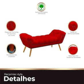 Introduza um toque de elegância ao seu quarto com o Recamier Estofado Ayla. Este móvel é mais do que estiloso e moderno; é a expressão máxima de sofisticação. Com detalhes em captones no assento e nas braças, além de acabamentos com botões na cor do móvel, esta recamier oferece uma decoração inigualável. As tachinhas de alumínio adicionam um charme extra, elevando ainda mais o ambiente. Além de funcional, o Recamier Ayla é uma verdadeira obra de arte, trazendo não apenas conforto, mas um toque de elegância incomparável ao seu espaço pessoal. Renove seu quarto com esta peça única.