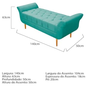 Gostaria de um móvel que trouxesse mais elegância e sofisticação para o seu lar? O Recamier Ari é sua melhor opção! Com característica moderna e com acabamento de qualidade, este produto atenderá suas expectativas! O Recamier Ari é projetado para atender um requisito intimista e aconchegante, transmitindo a ideia de um contexto refinado e singular. Além disso, seu design foi desenvolvido carinhosamente, pensando em levar até você um conforto inigualável. Seus detalhes em botonê garantem um toque final de bom gosto e luxuosidade. Especificações Técnicas do Recamier Ari: - Altura: 63 cm; - Largura: 140 cm; - Profundidade: 50 cm; - Altura do Assento: 50 cm; - Largura do Assento: 104 cm; - Espessura do Assento: 18 cm; - Tamanho do Pés: 20 cm; - Peso: 20 kg. Diferenciais do Recamier Ari: - Material da Estrutura: fabricado com Madeira Pinus e Eucalipto, e alguns detalhes em MDF; - Detalhes do Tecido: possui detalhes em botonê, onde os botões são revestidos no mesmo tecido do produto e finalizados com excelente acabamento; - Detalhes dos Pés: acompanha kit de pés (4 pés) com alta resistência; - Volumes: um único produto. Recomendações de limpeza: -Limpar com flanela limpa e seca. Não molhar o móvel e não expor em lugar úmido ou próximo de fontes de calor. Não usar produtos abrasivos.