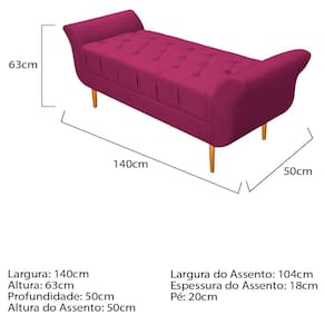 Gostaria de um móvel que trouxesse mais elegância e sofisticação para o seu lar? O Recamier Ari é sua melhor opção! Com característica moderna e com acabamento de qualidade, este produto atenderá suas expectativas! O Recamier Ari é projetado para atender um requisito intimista e aconchegante, transmitindo a ideia de um contexto refinado e singular. Além disso, seu design foi desenvolvido carinhosamente, pensando em levar até você um conforto inigualável. Seus detalhes em botonê garantem um toque final de bom gosto e luxuosidade. Especificações Técnicas do Recamier Ari: - Altura: 63 cm; - Largura: 140 cm; - Profundidade: 50 cm; - Altura do Assento: 50 cm; - Largura do Assento: 104 cm; - Espessura do Assento: 18 cm; - Tamanho do Pés: 20 cm; - Peso: 20 kg. Diferenciais do Recamier Ari: - Material da Estrutura: e alguns detalhes em MDF; - Detalhes do Tecido: possui detalhes em botonê, onde os botões são revestidos no mesmo tecido do produto e finalizados com excelente acabamento; - Detalhes dos Pés: acompanha kit de pés (4 pés) com alta resistência; - Volumes: . Recomendações de limpeza: -Limpar com flanela limpa e seca. Não molhar o móvel e não expor em lugar úmido ou próximo de fontes de calor.