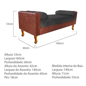 Com uma estrutura e beleza única, o Recamier Félix se adapta em qualquer ambiente, tornando-o ainda mais elegante e harmonioso. Um Recamier luxuoso de alta qualidade, dará um toque especial em seu ambiente. Não perca essa oportunidade de levar mais charme e requinte ao seu cômodo, adquira já o seu! Especificações Técnicas do Recamier Félix: - Altura: 53 cm; - Largura: 160 cm; - Profundidade: 60 cm; - Altura do Assento: 42 cm; - Largura do Assento: 140 cm; - Profundidade do Assento: 60 cm; - Altura dos Pés: 18 cm; - Peso: 35 kg. - Peso Suportado: 220 kg. Medida Interna do Baú: - Altura: 11 cm; - Largura: 140 cm; - Profundidade: 55 cm; Diferenciais do Recamier Félix: - Material da Estrutura: fabricado com Madeira Pinus e Eucalipto Reflorestada, e alguns detalhes em MDF; - Tipo de Assento: estofado e com espuma de densidade D-26; - Tipo de Encosto: estofado e com espuma de densidade D-18; - Detalhes do Tecido: possui detalhes em botonê, onde os botões são revestidos no mesmo tecido do produto e finalizados com excelente acabamento; - Detalhes dos Pés: acompanha kit de pés (4 pés) de madeira, no estilo Luís XV, com alta resistência; - Volumes: nessa compra você receberá um único produto. Recomendações de limpeza: -Limpar com flanela limpa e seca. Não molhar o móvel e não expor em lugar úmido ou próximo de fontes de calor. Não usar produtos abrasivos.