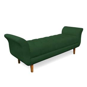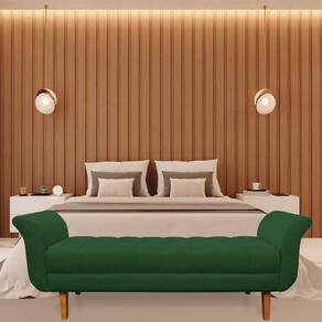 O Recamier Olinda é uma tendência da decoração atual que pode ser muito bem-vinda em diversos ambientes, como quarto, sala, escritório, hall de entrada, etc. Um conceito moderno e usual que pode servir de apoio na frente da cama, contém um assento ótimo para relaxar nos momentos de descanso e leitura. Viu só como ele é prático e multifuncional! Tem mais, ele conta com um design todo expressivo, o charme fica por conta de vários fatores: Das curvas sinuosas dos braços, assento em botonê e para completar este lindo móvel, os pés são chanfrados, o que lhe confere elegância e rusticidade. Sua estrutura é produzida em madeira de eucalipto proveniente de reflorestamento, suportando em média até 180 Kg, o estofamento é feito com espuma D-23. Revestido no Veludo no tom Verde, um tecido super resistente e fácil de limpar. Uma peça clássica que vai dar um toque todo especial ao seu dormitório. Não perca tempo e leve o Recamier Olinda para a decoração da sua casa!