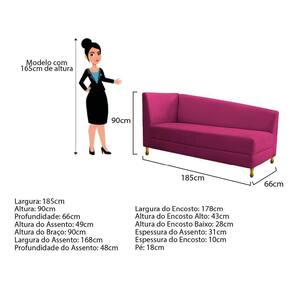 Com uma estrutura e beleza única, o Recamier Valéria se adapta em qualquer ambiente, tornando-o ainda mais elegante e harmonioso. Um Recamier luxuoso de alta qualidade, dará um toque especial em seu ambiente. Não perca essa oportunidade de levar mais charme e requinte ao seu cômodo, adquira já o seu! Especificações Técnicas do Recamier Valéria: - Altura: 90 cm; - Largura: 185 cm; - Profundidade: 66 cm; - Altura do Assento: 49 cm; - Altura do Braço: 90 cm; - Largura do Assento: 168 cm; - Profundidade do Assento: 48 cm; - Largura do Encosto: 168 cm; - Altura do Encosto Alto: 43 cm; - Altura do Encosto Baixo: 28 cm; - Espessura do Assento: 31 cm; - Espessura do Encosto: 10 cm; - Altura dos Pés: 18 cm; - Peso: 35 kg. - Peso Suportado: 220 kg. Diferenciais do Recamier Valéria: - Material da Estrutura: fabricado com Madeira Pinus e Eucalipto Reflorestada, e alguns detalhes em MDF; - Tipo de Assento: estofado e com espuma de densidade D-26; - Tipo de Encosto: estofado e com espuma de densidade D-18; - Detalhes do pé: 1 Kit (04 pés) de madeira, com alta resistência; - Volumes: nessa compra você receberá um único produto. Recomendações de limpeza: -Limpar com flanela limpa e seca. Não molhar o móvel e não expor em lugar úmido ou próximo de fontes de calor. Não usar produtos abrasivos.