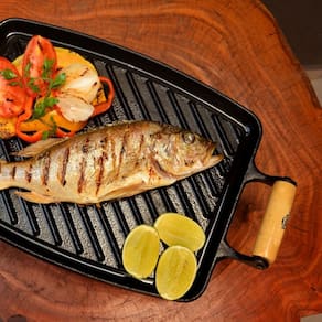 Réchaud 2000 Chapa Grill Alça Madeira Panela Mineira 33x25cm O Réchaud 2000 Grill Alça de Madeira da Panela Mineira possui um design autêntico, com a base estriada e canaletas nas bordas que permitem o escoamento da gordura da peça que está sendo cozida. Ideal para preparar fritar, selar e grelhar carnes, legumes, peixes e outros alimentos, de maneira prática e eficiente. Sua excelente distribuição e retenção de calor, característico do ferro fundido, mantém os alimentos aquecidos por muito mais tempo, além de enaltecer seus sabores e aromas. Possui um berço modelo tradicional (estrutura que apoia a assadeira), que acompanha um fogareiro, composto de base, espiriteira (recipiente onde coloca-se álcool), regulador de chama, suporte e grelha. O fogareiro deve ser aceso com o álcool em gel 70% ou 90%. Sua capacidade é de aproximadamente 300ml, o suficiente para manter a chama acesa por cerca de 1h30. Onde usar a Chapa: Pode ser utilizado em fogões a gás, a lenha, elétricos, cooktops de indução e vitro-cerâmicos. A alça de madeira não permite que o produto seja levado ao forno, churrasqueira ou fogo de chão. Orientação de Uso e Conservação:Antes do primeiro uso: Lave com água e sabão, seque bem com um pano e leve ao fogo para remover toda a umidade. Já vem pronta para uso, então não precisa ser curada. Guarde em um local seco. Após cada uso: Lave com água e sabão, usando uma esponja ou escova para remover todos os resíduos de alimentos. Se restarem resíduos, ferva água com um pouco de detergente para soltá-los. Pintura: Revestimento atóxico que garante durabilidade e proteção prolongada, sem causar nenhum dano à saúde. Características Técnicas e Medidas: Modelo: Retangular Arredondado.Material Réchaud: Ferro Fundido.Altura com a Chapa: 14,5cm.Linha: Bares e Restaurantes.Altura sem a Chapa: 9cm.Comprimento: 33cm.Chapa: Estriada.Largura: 25cm.Peso: 5Kg. Itens Inclusos: 01 Chapa Bifeteira Alça de Madeira Estriada 33x25cm.01 Suporte Réchaud em Ferro Fundido.01 Regulador Chama.01 Espiriteira. Código: 786PMProdutoLojaPlast.