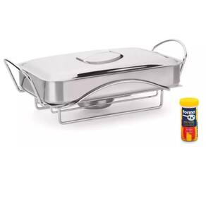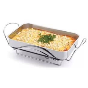 Rechaud assadeira tampa inox 5 peças forma+ queimador composição do produto: 1 assadeira em inox 1 suporte em aramado cromado 1 tampa em inox 1 queimado em inox 1 placa difusora de calor em alumínio 1 pote queimador