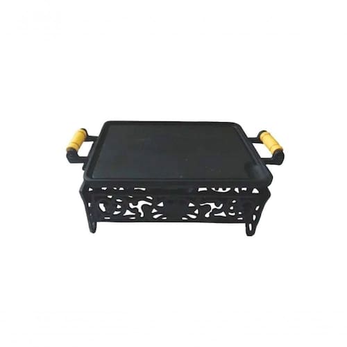 Rechaud/Bifeteira sem lateral confeccionado em ferro fundido de alta qualidade, com 1 chama, medidas 25x35cm e 17cm de altura.