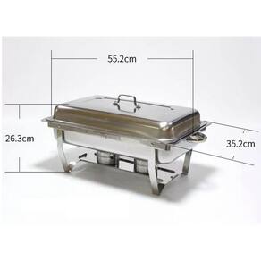 Rechaud 11L com 6 cubas GN 1/6. Sirva até seis pratos com aquecimento uniforme, higiene e visual profissional.
