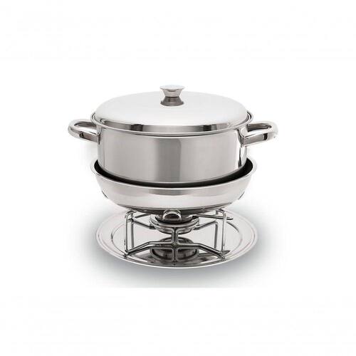 Rechaud Com Banho Maria 8 Litros - Platanos - Brinox O Rechaud Plátanos tem Caçarola Funda e Tampa de Aço Inox, um material higiênico e neutro, ideal para ser utilizado em contato com os alimentos. Possui capacidade para 8 Litros e vem com um Suporte Cromado, um Fogareiro de Aço Inox Grande e com Abafador e uma Cuba para Banho Maria. Tudo isso sobre um Prato de Aço Inox com 30,5 centímetros de diâmetro. Um conjunto completo para servir a comida aquecida e com muita elegância. Material - Aço Inox Linha - Plátanos Tipo de Produto - Servir Composição - 01 Caçarola Funda com Tampa 01 Suporte Cromado 01 Fogareiro Aço Inox Grande com Abafador 01 Prato 32 cm 01 Cuba para Banho Maria 30,5 cm Dimensões - 32,6x33,2x14,6 cm CxLxA Peso - 3213 g Garantia - 90 dias para vícios ou defeitos de fabricação.
