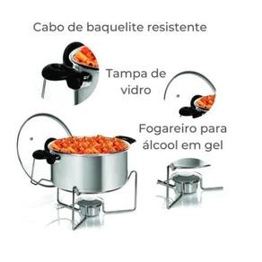 Rechaud Panela Redondo Polido Alumínio Tampa Vidro Nº 24Praticidade e elegância em um único produto de qualidadeEm alumínio, resistente é seu material Ideal para manter os alimentos aquecidos enquanto são servidos ao publicoO suporte para a panela também é feito para apoiar a tampa da panelaBonito, possui ótimo designA tampa é de vidro temperado transparente O que é, e como se usa o rechaud O rechaud é um dispositivo feito especificamente para manter os pratos aquecidos em banho-maria. Neste processo, a água do recipiente é aquecida pelo uso de fogareiros, esquentando o recipiente em que está o alimento. É uma opção perfeita para quem deseja servir pratos de forma eficiente, prática e elegante. O Rechaud é sem resistência elétrica utilizando o método simples de aquecimento utilizando uma chama única, e vem acompanhado de suporte e queimador para álcool gel. Imagens meramente ilustrativas