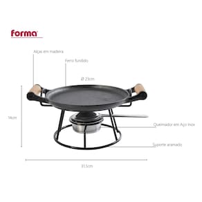 Réchaud Redondo com Chapa de Ferro Fundido para Fondue de Carne - Forma Utilidades