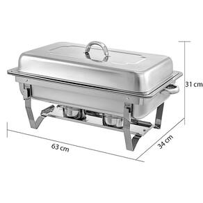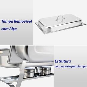 Dimensões do Rechaud C x L x A : 63,5 x 36 x 31 cm Capacidade: 9,5 Litros de banho-maria Capacidade das 3 cubas de alimentos: 9 litros total