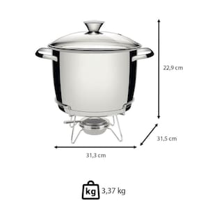 - Com o Rechaud Tramontina em Aço Inox Fundo Triplo com Fogareiro e Tampa de Vidro 7,8 L da linha Allegra ficará ainda mais prático de proporcionar suas receitas para os convidados.