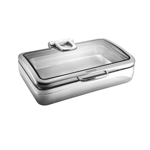 Próprio para uso em bufês e eventos, o rechaud funciona na base por indução, garantindo eficiência e versatilidade.