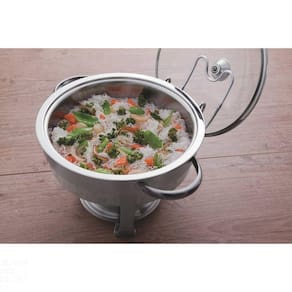 Retire o fogareiro da base do rechaud e adicione álcool gel industrial.