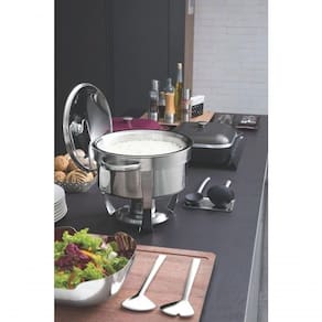 O Rechaud Tramontina Redondo em Aço Inox Banho Maria com Suporte para Tampa e Fogareiro 7 L é o produto certo para o sucesso do seu evento. Altamente durável e higiênico, possui tampa de vidro que permite que os convidados possam visualizar os alimentos. O Rechaud é totalmente produzido em aço inox, mantendo os seus pratos saudáveis e conservando na temperatura ideal. Além disso, o produto possui suporte para descanso da tampa durante o uso e suas alças facilitam na hora do .