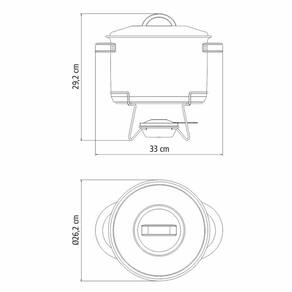 INFORMAÇÕES GERAIS - Totalmente feito de aço inox, não solta nenhum resíduo nos alimentos, mantendo-os saudáveis. Seu desenho limpo e sem cantos torna a limpeza muito mais fácil. - O fundo triplo (aço inox + alumínio + aço inox) distribui o calor uniformemente, proporcionando um cozimento mais rápido e uniforme, economizando energia e deixando os alimentos aquecidos por mais tempo. - As alças facilitam o transporte. - Conserva os alimentos na temperatura ideal. - Próprio para uso em bufês ou eventos. - Acompanha fogareiro de aço inox. - Além de funcionar como rechaud, pode-se utilizar como panela, bastando apenas retirá-la do suporte.