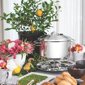 DESCRIÇÃO DO RECHAUD TRAMONTINA INOX FUNDO TRIPLO COM FOGAREIRO 6,1 L - O Rechaud Tramontina em Aço Inox Fundo Triplo com Fogareiro e Alças 6,1 L é próprio para bufês e eventos, garantindo alto desempenho para essas ocasiões. - Totalmente produzido em inox, ele não solta resíduos nos alimentos e seu fundo triplo (aço inox + alumínio + aço inox) distribui o calor uniformemente, proporcionando um cozimento mais rápido, economizando energia e deixando os alimentos aquecidos por mais tempo. - As suas alças facilitam o transporte. - Elegância e praticidade na hora de servir, esse item combina com todos os momentos! Acompanha fogareiro de aço inox.