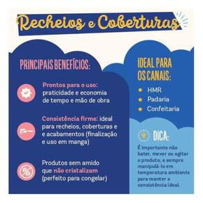 Já vem pronto. Consistência ideal para rechear bolos, tortas e bombons. Basta cortar a ponta da embalagem e aplicar nas mais diversas preparações