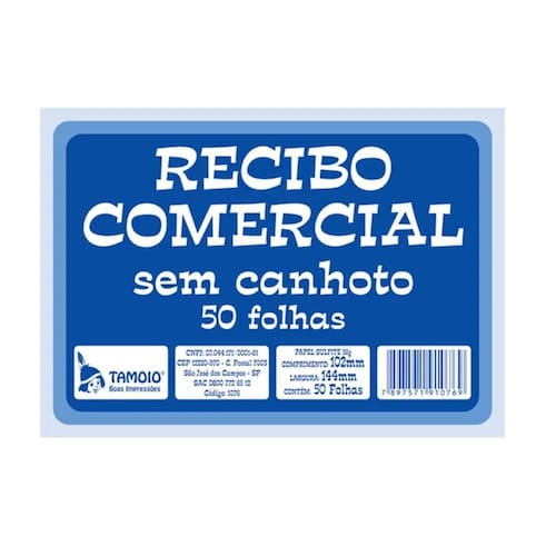 Recibo Comercial Tamoio Sem Canhoto 50 Folhas 15x10cm 20un Recibo Comercial Tamoio Sem Canhoto 50 Folhas 15x10cm. O Recibo Comercial Sem é ideal para auxiliar a organização em comércios, empresas e escritórios. Ficará mais fácil controlar pagamentos de serviços avulsos ou mensais.