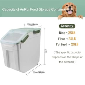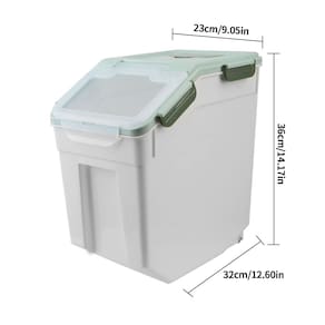 Este recipiente de armazenamento de ração para animais de estimação é feito de PP de grau alimentício, proporcionando um ambiente de armazenamento saudável. Os grandes recipientes de farinha de plástico são perfeitos para armazenar sua farinha, açúcar, arroz, grãos, nozes, feijão, lanches, passado. café, chá, ração para animais de estimação ou qualquer coisa que você queira armazenar. Recipientes herméticos, à prova de vazamentos e duráveis. Uma vedação de silicone aprimorada mantém os alimentos frescos por mais tempo. O design da capa transparente torna toda a caixa de armazenamento mais bonita e elegante. Com design de janela visível, você pode ver o interior claramente num relance, para não precisar abrir a caixa. Especificações: Material: PP de grau alimentício, silicone Cor: verde Capacidade: pode conter cerca de 13 kg de farinha e cerca de 9 kg de comida de cachorro por recipiente. (a capacidade específica depende da forma da ração para animais de estimação). Dimensões (aprox. ): 32 x 23 x 36 cm (C x L x A) Incluído na embalagem: 1 recipiente de armazenamento de ração para cães. 1 colher de comida de plástico (entrega de ). 1 copo medidor. - ?Recipiente de armazenamento multifuncional?O recipiente de armazenamento de farinha é uma ótima maneira de armazenar qualquer tipo de alimento e mantê-lo seguro e seco pelo tempo que você precisar. O recipiente hermético para alimentos é ótimo para armazenar farinha, grãos, cereais, açúcar, arroz, nozes, feijão, lanche, café, chá, pão, milho, macarrão, ervas, ração para animais de estimação, soja, produtos secos, etc. - ?Material de qualidade alimentar e durável? O recipiente de armazenamento de arroz é feito de plástico PP livre de BPA e silicone ecológico, não tóxico e seguro. Tamanho (aprox. ): 32 x 23 x 36 cm (C x L x A). Capacidade: pode suportar cerca de 11 kg de farinha/arroz e cerca de 9 kg de ração para animais de estimação por recipiente. Dica: a capacidade varia dependendo do tamanho do que você está colocando, a capacidade do produto é apenas para referência. - Recipiente hermético para alimentos: capa hermética de silicone selada com tampa flip e fechos de trava, mantendo seus alimentos limpos e secos. Garante que seus ingredientes permaneçam sempre frescos. - ?Fácil de usar?A frente do recipiente de armazenamento de comida de cachorro de plástico tem uma ranhura e uma grande abertura inclinada, o que o torna muito fácil de retirar e encher. Com tampas transparentes, resume-se a quantidade restante do barril. Há 2 rodas pequenas na parte de trás, você só precisa levantar a frente para puxá-la facilmente. - ?Fácil de limpar?As tampas do recipiente de armazenamento de ração para animais de estimação são removíveis, fáceis de limpar. Este recipiente para comida de cachorro pode ser colocado na prateleira, despensa, bancada, mesa ou armário, mantenha limpo e arrumado.