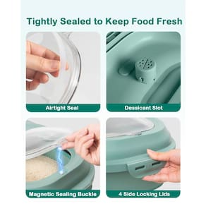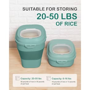 recipiente de armazenamento de arroz - Tamanho extragrande: este recipiente de arroz pode conter 13,6 a 22,7 kg de arroz ou 13,6 a 16 kg de ração para animais de estimação. Tamanho desdobrado: 40 cm C x 33 cm L x 36 cm A, 23 litros, adequado para armazenar 22,7 kg de arroz ou 13,6 kg de ração para animais de estimação. Tamanho dobrado: 17,8 m. 18 cm C x 30 23 cm L x 15 cm A, 6 litros, pode conter cerca de 5,4 kg de arroz ou 2,8 kg de ração para cães ou animais de estimação - Rodas embutidas: o recipiente de comida para cães vem com 2 rodas móveis na parte inferior para facilitar o movimento e a colocação - Vedação superior para frescura: nosso recipiente de armazenamento de arroz é projetado com uma vedação dupla hermética e 4 tampas de bloqueio laterais, garante que a comida do seu animal de estimação permaneça fresca por mais tempo, livre de umidade - Armazenamento versátil: este recipiente essencial de armazenamento de ração para animais de estimação é ideal para armazenar arroz ou ração para animais de estimação, outros alimentos domésticos e muito mais. Adequado para alimentos, arroz, comida de cachorro, comida de gato, farinha, milho, etc - O que você pode obter: o recipiente de armazenamento de alimentos vem com dois pequenos recipientes de armazenamento de alimentos, uma colher de alimentos, suporta todas as peças que você precisa. E este conjunto de recipientes de armazenamento de comida de gato atencioso com uma linda caixa é a escolha ideal para qualquer família - Observação: a capacidade do recipiente de alimentos depende de vários tipos de alimentos. A capacidade máxima pode conter 22,7 kg de arroz