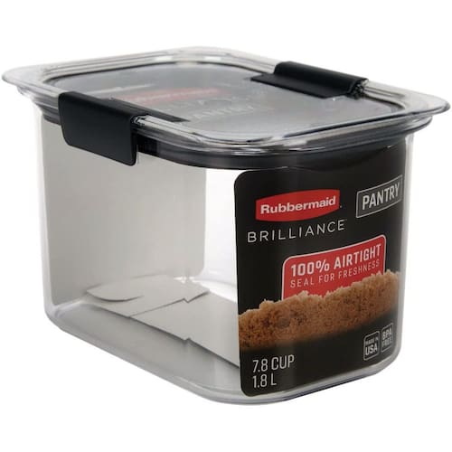 Rubbermaid Recipiente hermético de armazenamento de alimentos Brilliance Pantry, livre de BPA, 7,8 xícaras, ideal para açúcar mascavo – eficiente, à prova de vazamento e pode ser lavado na máquina de - Hermeticamente fechado, à prova de vazamento: a vedação segura mantém os alimentos frescos e evita derramamentos - Design cristalino: fácil visualização do conteúdo do recipiente para organização sem esforço - Armazenamento eficiente: o design modular garante economia de espaço na despensa ou armário - Resistente a manchas e odores: ajuda o recipiente a permanecer novo, mesmo com o uso regular - Alta capacidade: recipiente de 7,8 xícaras ideal para armazenar itens volumosos como açúcar mascavo - Livre de BPA, durável: feito para uso diário, seguro para freezer e lava-louças (rack superior) - Uso versátil: perfeito para preparações de refeições, sobras, feriados, eventos e organização diária da despensa