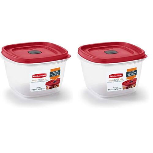 Rubbermaid Easy Find Lids Recipiente de armazenamento e organização de alimentos para 7 xícaras, vermelho (Pacote com 2) - As informações abaixo são apenas por pacote - Isenção de responsabilidade: apenas recipientes 3C, 5C e 7C contêm tampa ventilada - Ventilação embutida para micro-ondas resistente a respingos - As tampas se encaixam nas bases para reduzir a bagunça - Livre de BPA, pode ir ao micro-ondas e lava-louças - Paredes grossas e duráveis para uso diário - Inclui 1 recipiente e tampa de armazenamento de alimentos de 7 xícaras - Inclui um recipiente de armazenamento de alimentos de 7 xícaras e tampa