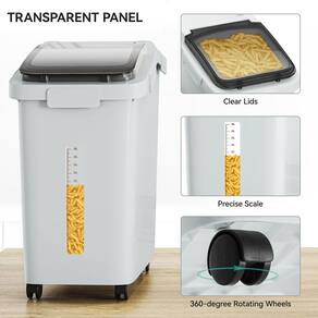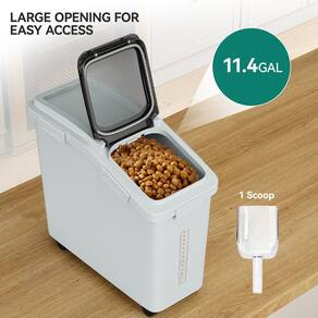 YITAHOME Recipiente grande de armazenamento de farinha, caixa de armazenamento de arroz comercial de 11,4 galões, 280 xícaras com rodas, caixa de armazenamento de prateleira com colher e tampa, caixa - Capacidade de armazenamento: este recipiente de farinha de ingrediente possui uma grande capacidade de 11,4 galões; pode armazenar diferentes ingredientes separadamente, como açúcar de cozimento, farinha e assim por diante - Design conveniente: nossa caixa de armazenamento de ingredientes tem uma grande pá transparente para facilitar a seguração; o corpo do barril possui um design transparente e uma escala; a grande janela transparente na parte superior permite fácil observação das mudanças internas de estoque - Vedação superior: o recipiente de ingredientes comerciais tem uma sucção magnética com 6 fivelas de vedação ao redor; a tira de borracha dentro da capa oferece boa vedação; a tampa superior é projetada com um côncavo para torná-la plana e não escorregar facilmente, permitindo o armazenamento de temperos, copos e tigelas - Fácil de mover: o recipiente de armazenamento de arroz de 11,4 gal está equipado com 4 rodas giratórias removíveis de 360 graus; as rodas facilitam o movimento e o transporte suaves pela cozinha ou sala de armazenamento; use-o de acordo com suas próprias necessidades - Caixa à prova de umidade: a caixa removível à prova de umidade dentro da tampa pode ser usada para colocar desoxidante ou alho para manter os alimentos frescos; o material PP é seguro, resistente e durável para uma longa vida útil